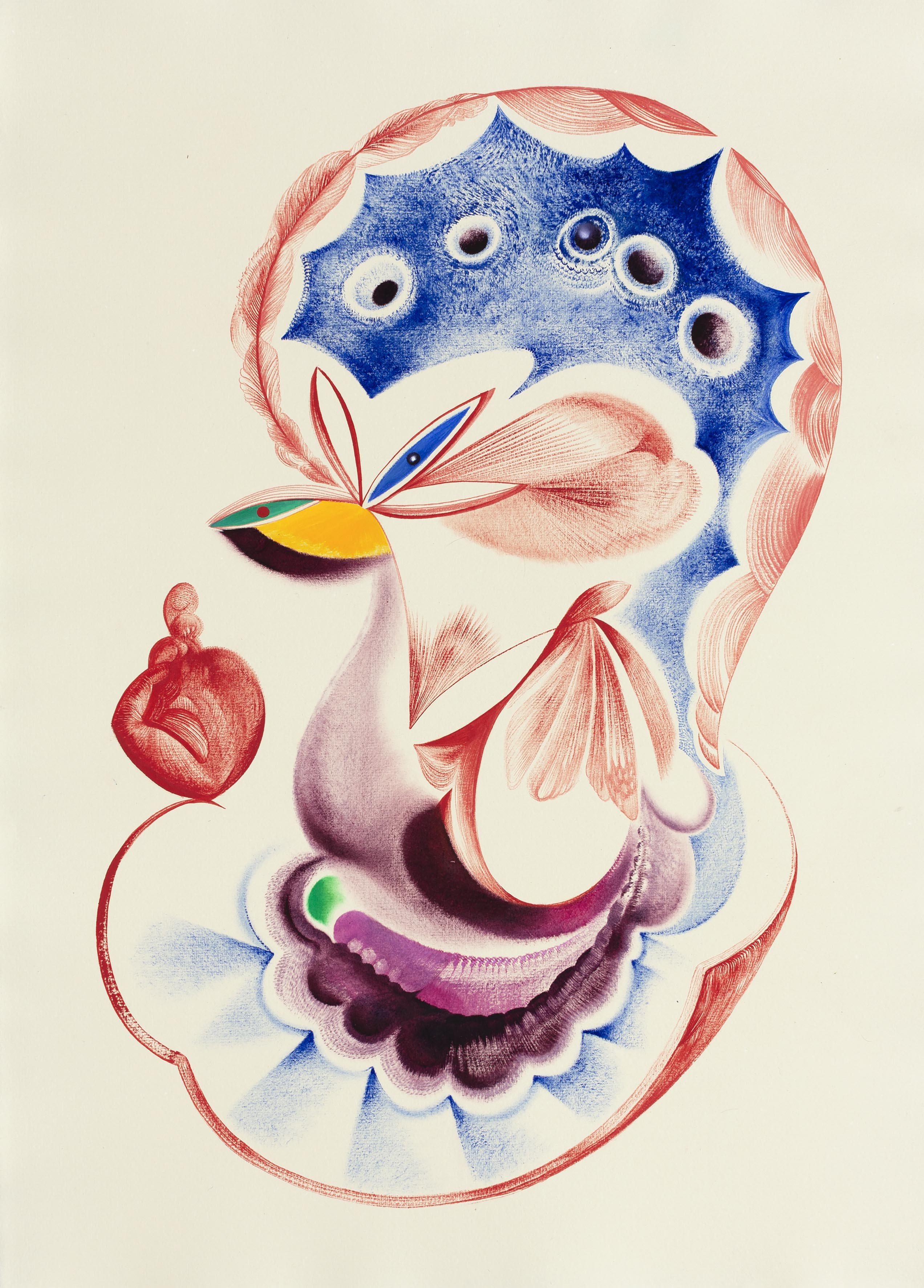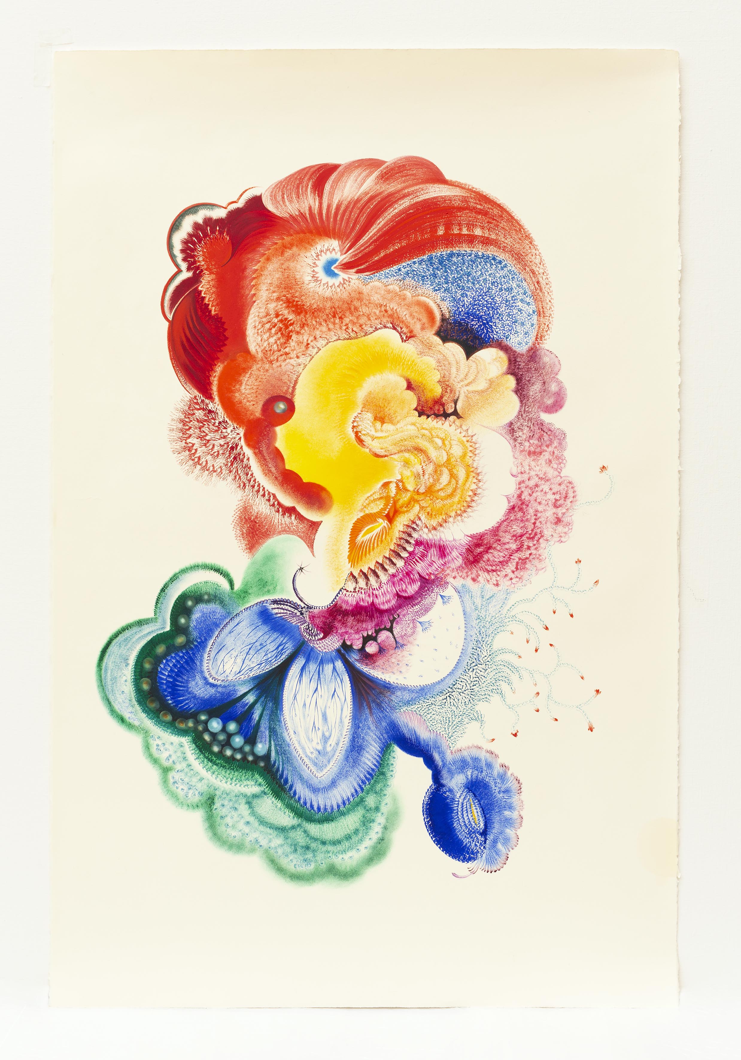 I remember the moment when, as a student at Prague’s Academy of Fine Arts, I greedily jumped at the chance to buy a few reams of handmade paper from the paper mill at Velké Losiny. As though I guessed that they would open a new path for me. I wanted to try the paper the same day, but I only had a few tubes of oil on my desk and no brush. I squeezed the paint from the tubes directly onto my finger–tips and got to work on the first group of drawings, which from that time I refer to as ‘diary entries.’ They compliment my canvases but have an independent life of their own. They aren’t sketches for paintings, but rather soundings of the subconscious, ciphers that map and reveal my deepest private self. V.H.